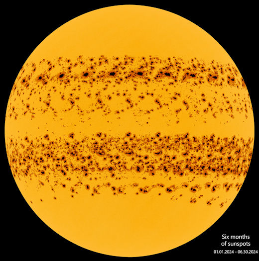 IT LOOKS LIKE SOLAR MAX: The first six months of 2024 are in the books. Amateur astronomer Eduardo Schaberger Poupeau stacked daily sun images for all 182 days, and it looks like Solar Max: