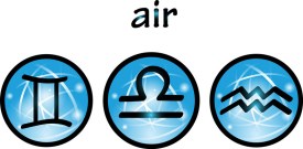 Astrologically there are three AIR signs — Gemini, Libra, Aquarius, and three FIRE signs — Sagittarius, Aries, Leo and these AIR and FIRE signs are opposite each other. Opposite AIR Gemini is FIRE Sagittarius, opposite AIR Libra is FIRE Aries, opposite AIR Aquarius is FIRE Leo. Same with the three WATER and three EARTH signs — Cancer, Scorpio, Pisces WATER opposite Taurus, Virgo, Capricorn EARTH and vice versa.